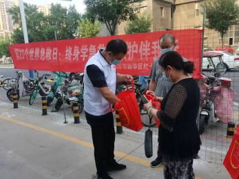 9月10日是第23个世界急救日,主题为“终身学急救,急救伴我行”。 在伟大祖国第73个生日来临之际,石家庄市新华区红十字会结合当前疫情形势开展“挂国旗迎国庆,宣传急救知识敬“母亲”活动。区红十字会克服疫情防控不聚集等客观因素,通过定时随机和定点固定宣传的模式,进一步提升群众对应急救护知识的认知度,让大家掌握基本急救技能,营造“人人学急救,急救为人人”的良好社会氛围。截止目前共发放各类应急宣传资料1000余份,发放宣传手提兜500余个。